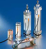 Os sensores de cilindro servem para a detecção da posição do êmbolo em cilindros pneumáticos. Eles são montados diretamente no cilindro. Através da parede da carcaça, que não é em material magnetizável (por exemplo, alumínio, latão ou aço inoxidável), eles detectam os ímãs anulares aplicados no êmbolo.